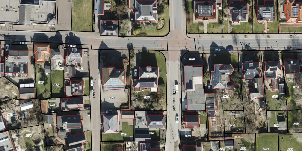 Gebruik de zoekbalk of klik op een perceel voor informatie over de adressen binnen dit perceel.