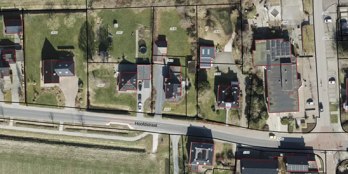 Het perceel waarop Hoofdstraat 29 staat heeft een oppervlakte van 563 m². Dit is een groot perceel. De perceeloppervlakte wordt geregistreerd door het Kadaster. Gedetailleerde informatie over de maten van dit perceel kunt u vinden in het rapport Kadastrale kaart met maatvoering van Hoofdstraat 29.