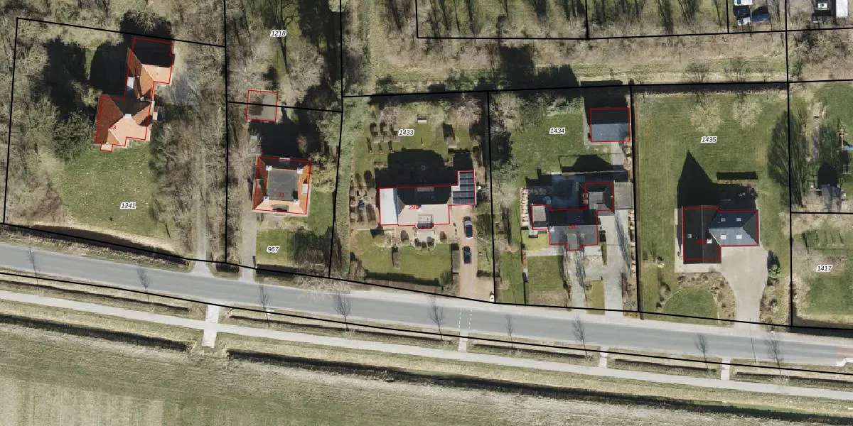 Het adres ligt op het perceel LEE02-A-1433, dat zich in de kadastrale gemeente Leens bevindt. De gemiddelde perceelgrootte in Leens is 1,3 ha. Dit perceel is kleiner: de perceeloppervlakte bedraagt 1660 m². De grootste perceeloppervlakte in de kadastrale gemeente is 58,5 ha. De kleinste oppervlakte bedraagt 0 m². Dit is het enige adres dat aanwezig is op het perceel. De huidige grenzen van het perceel zijn digitaal in de Basisregistratie Kadaster (BRK) geregistreerd op 18-10-2000.