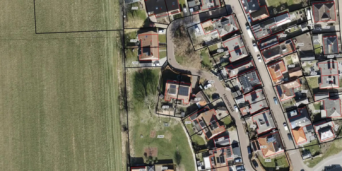 Hornstraat 5 is gelegen op kadastraal perceel LEE02B2306. Deze kadastrale aanduiding is uniek en wordt gebruikt door het Kadaster om eigendomsrechten en andere zakelijke rechten vast te leggen. Het perceel maakt onderdeel uit van de kadastrale gemeente Leens.