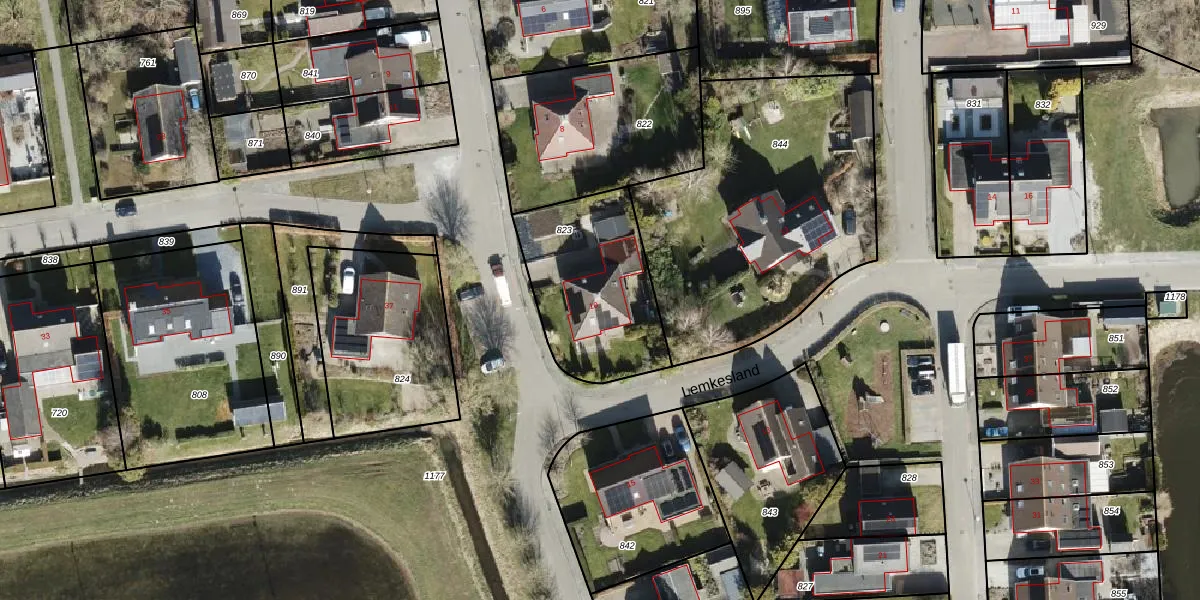 Lemkesland 10 is gelegen op kadastraal perceel LEE02K823. Deze kadastrale aanduiding is uniek en wordt gebruikt door het Kadaster om eigendomsrechten en andere zakelijke rechten vast te leggen. Het perceel maakt onderdeel uit van de kadastrale gemeente Leens.