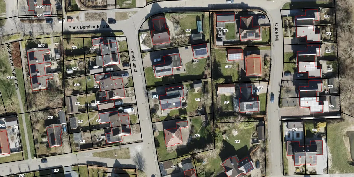 Gebruik de zoekbalk of klik op een perceel voor informatie over de adressen binnen dit perceel.