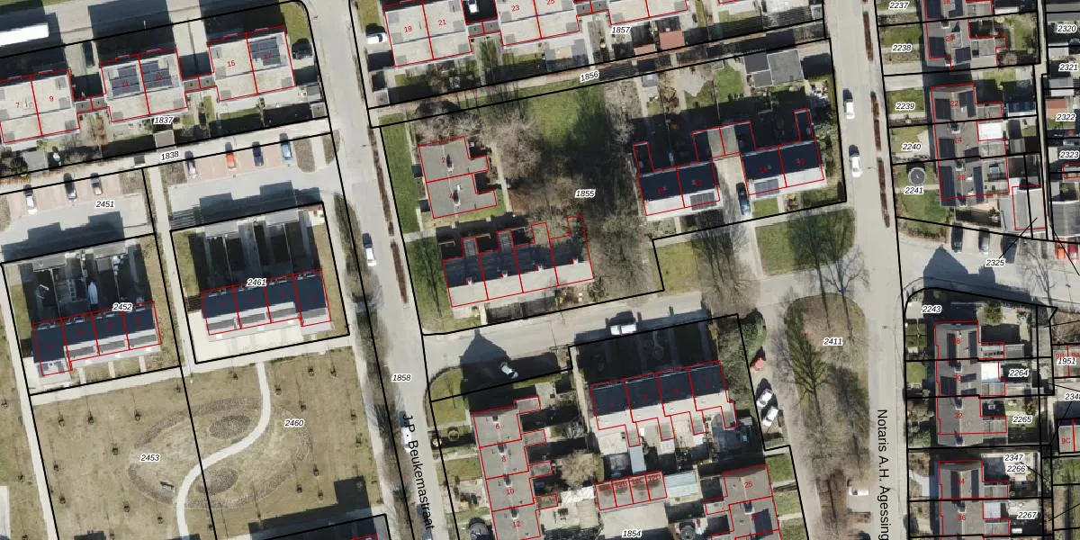 Het adres ligt op het perceel LEE02-B-1855, dat zich in de kadastrale gemeente Leens bevindt. De gemiddelde perceelgrootte in Leens is 1,3 ha. Dit perceel is kleiner: de perceeloppervlakte bedraagt 2965 m². Het grootste perceel in de kadastrale gemeente is 58,5 ha. Het kleinste perceel heeft een oppervlakte van 0 m². Op het perceel liggen in totaal 10 adressen. In de Basisregistratie Kadaster (BRK) werden de grenzen van het perceel geregistreerd op 06-02-2009.