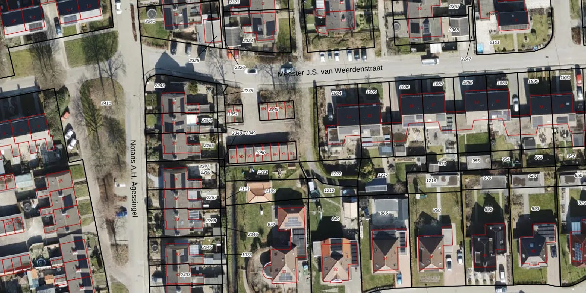 Het perceel waarop Meester J.S. van Weerdenstraat 9-J staat heeft een oppervlakte van 142 m². Dit is een middelgroot perceel. De perceeloppervlakte wordt geregistreerd door het Kadaster. Gedetailleerde informatie over de maten van dit perceel kunt u vinden in het rapport Kadastrale kaart met maatvoering van Meester J.S. van Weerdenstraat 9-J.