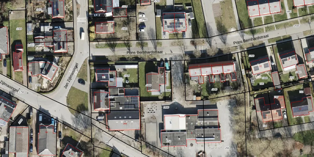 Prins Bernhardstraat 1 is gelegen op kadastraal perceel LEE02B1844. Deze kadastrale aanduiding is uniek en wordt gebruikt door het Kadaster om eigendomsrechten en andere zakelijke rechten vast te leggen. Het perceel maakt onderdeel uit van de kadastrale gemeente Leens.