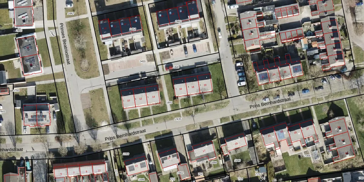 Prins Bernhardstraat 16 is gelegen op kadastraal perceel LEE02B1841. Deze kadastrale aanduiding is uniek en wordt gebruikt door het Kadaster om eigendomsrechten en andere zakelijke rechten vast te leggen. Het perceel maakt onderdeel uit van de kadastrale gemeente Leens.