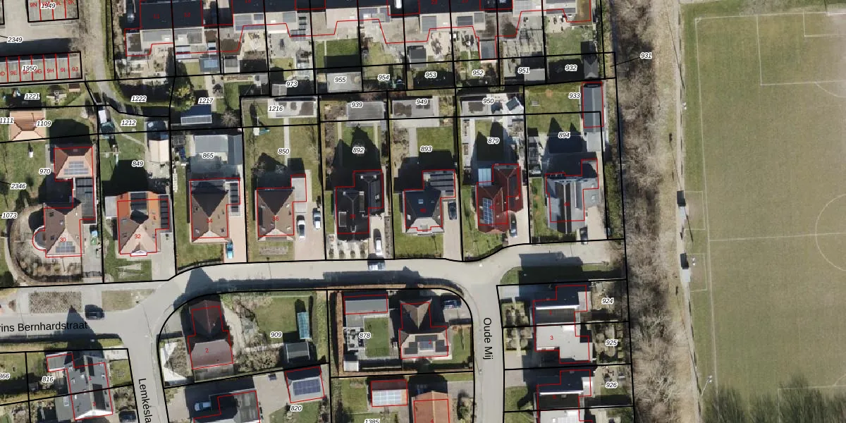 Het perceel waarop Prins Bernhardstraat 40 staat heeft een oppervlakte van 539 m². Dit is een groot perceel. De perceeloppervlakte wordt geregistreerd door het Kadaster. Gedetailleerde informatie over de maten van dit perceel kunt u vinden in het rapport Kadastrale kaart met maatvoering van Prins Bernhardstraat 40.