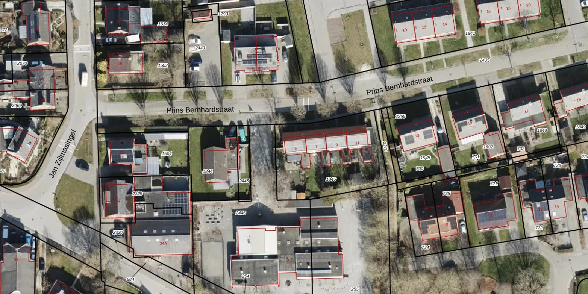 Het perceel waarop Prins Bernhardstraat 5 staat heeft een oppervlakte van 920 m². Dit is een groot perceel. De perceeloppervlakte wordt geregistreerd door het Kadaster. Gedetailleerde informatie over de maten van dit perceel kunt u vinden in het rapport Kadastrale kaart met maatvoering van Prins Bernhardstraat 5.