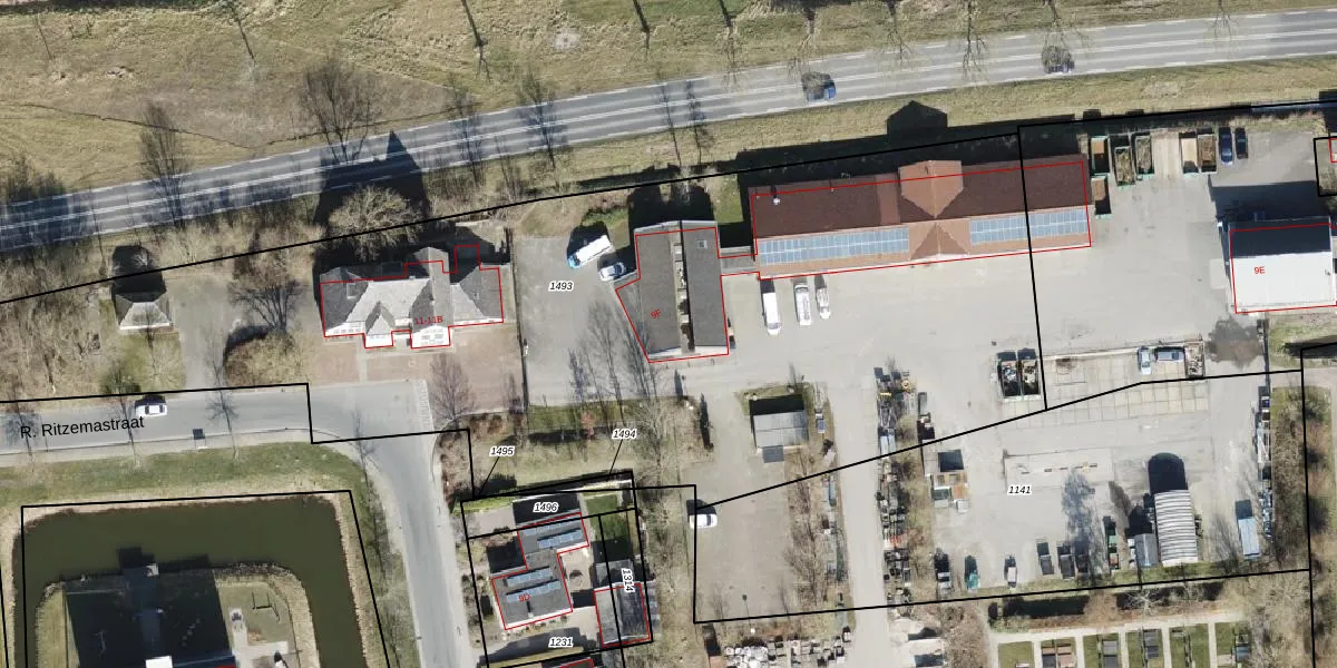 R. Ritzemastraat 9-F is gelegen op kadastraal perceel LEE02A1493. Deze kadastrale aanduiding is uniek en wordt gebruikt door het Kadaster om eigendomsrechten en andere zakelijke rechten vast te leggen. Het perceel maakt onderdeel uit van de kadastrale gemeente Leens.