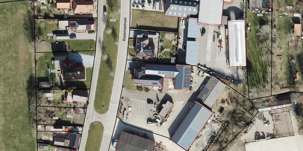Rietemastraat 16 is gelegen op kadastraal perceel LEE02B2295. Deze kadastrale aanduiding is uniek en wordt gebruikt door het Kadaster om eigendomsrechten en andere zakelijke rechten vast te leggen. Het perceel maakt onderdeel uit van de kadastrale gemeente Leens.