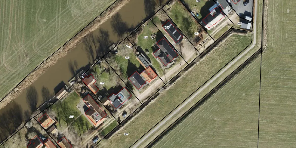 't Stort 18 is gelegen op kadastraal perceel LEE02K229. Deze kadastrale aanduiding is uniek en wordt gebruikt door het Kadaster om eigendomsrechten en andere zakelijke rechten vast te leggen. Het perceel maakt onderdeel uit van de kadastrale gemeente Leens.