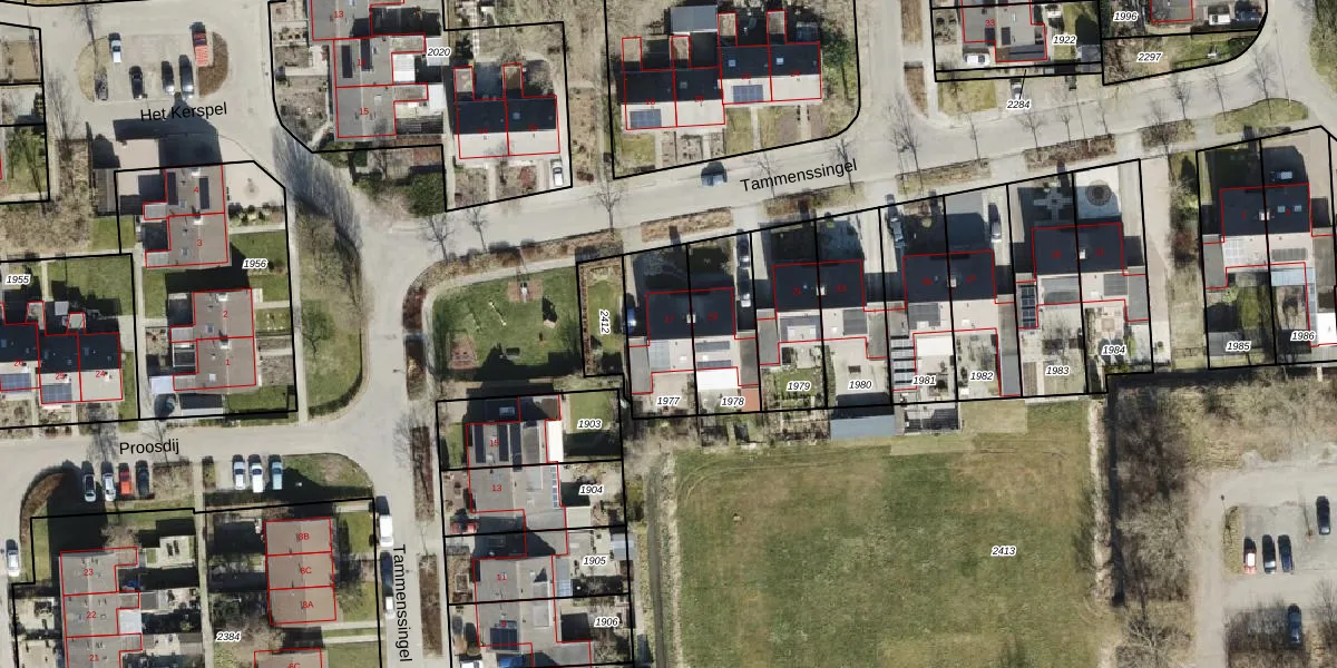 Tammenssingel 17 is gelegen op kadastraal perceel LEE02B1977. Deze kadastrale aanduiding is uniek en wordt gebruikt door het Kadaster om eigendomsrechten en andere zakelijke rechten vast te leggen. Het perceel maakt onderdeel uit van de kadastrale gemeente Leens.