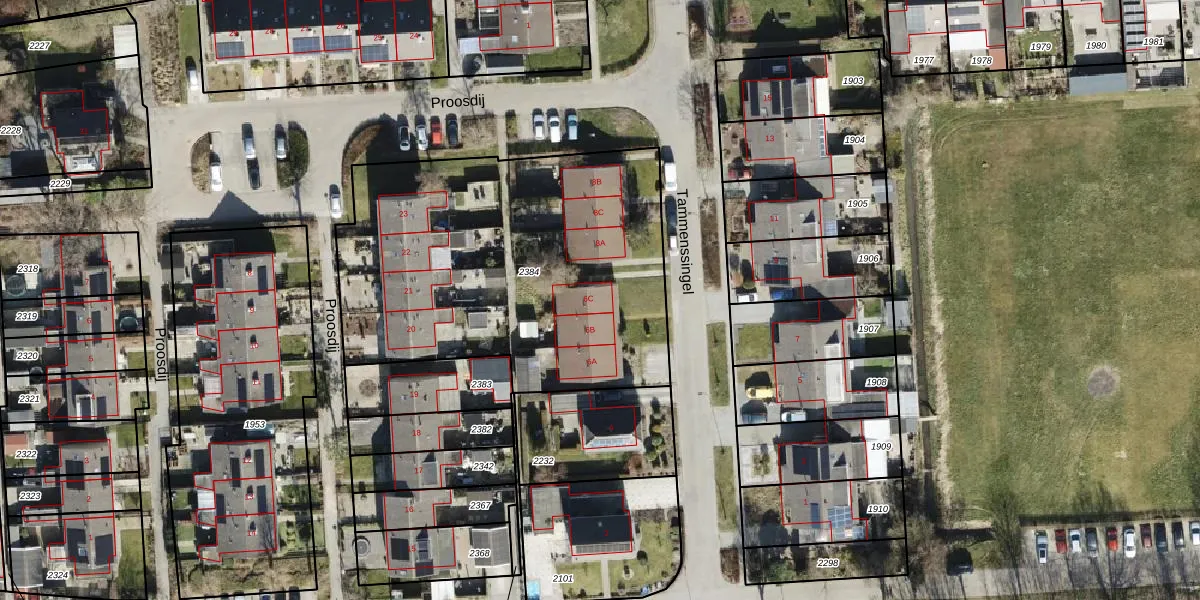 Tammenssingel 6-C is gelegen op kadastraal perceel LEE02B2384. Deze kadastrale aanduiding is uniek en wordt gebruikt door het Kadaster om eigendomsrechten en andere zakelijke rechten vast te leggen. Het perceel maakt onderdeel uit van de kadastrale gemeente Leens.