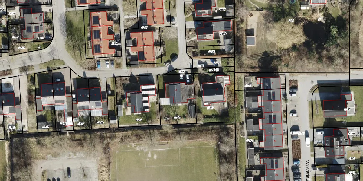 Gebruik de zoekbalk of klik op een perceel voor informatie over de adressen binnen dit perceel.