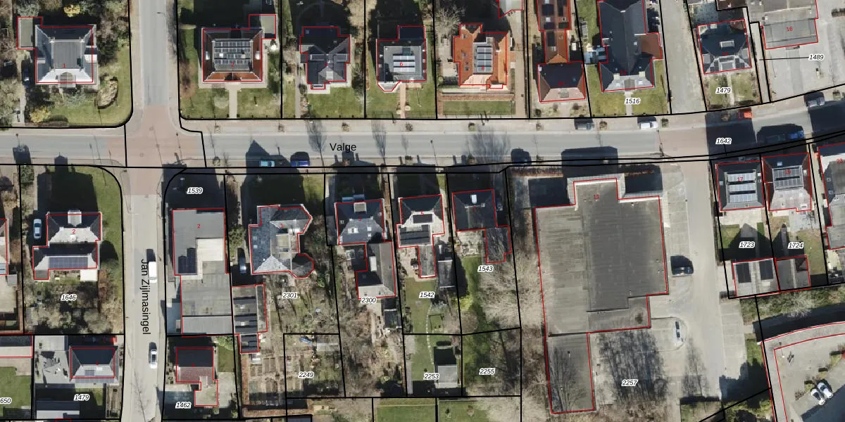 Valge 5 is gelegen op kadastraal perceel LEE02B1542. Deze kadastrale aanduiding is uniek en wordt gebruikt door het Kadaster om eigendomsrechten en andere zakelijke rechten vast te leggen. Het perceel maakt onderdeel uit van de kadastrale gemeente Leens.