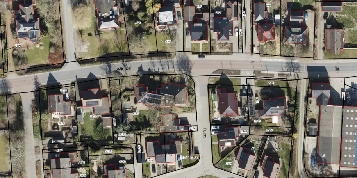 Het perceel waarop Wierde 7 staat heeft een oppervlakte van 1318 m². Dit is een zeer groot perceel. De perceeloppervlakte wordt geregistreerd door het Kadaster. Gedetailleerde informatie over de maten van dit perceel kunt u vinden in het rapport Kadastrale kaart met maatvoering van Wierde 7.