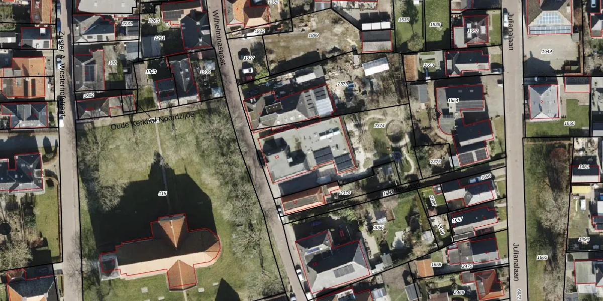 Wilhelminastraat 10 is gelegen op kadastraal perceel LEE02B2374. Deze kadastrale aanduiding is uniek en wordt gebruikt door het Kadaster om eigendomsrechten en andere zakelijke rechten vast te leggen. Het perceel maakt onderdeel uit van de kadastrale gemeente Leens.