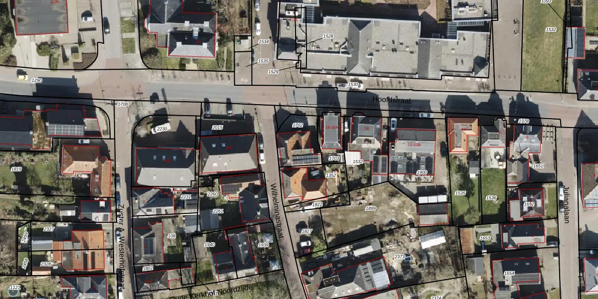 Het perceel waarop Wilhelminastraat 2 staat heeft een oppervlakte van 220 m². Dit is een middelgroot perceel. De perceeloppervlakte wordt geregistreerd door het Kadaster. Gedetailleerde informatie over de maten van dit perceel kunt u vinden in het rapport Kadastrale kaart met maatvoering van Wilhelminastraat 2.