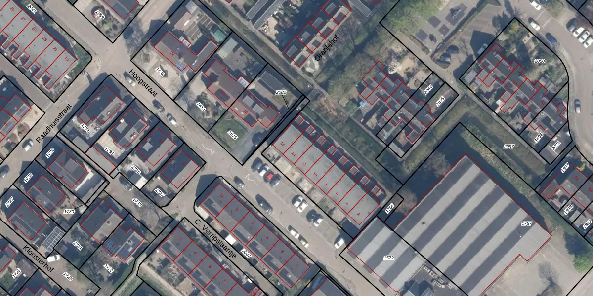 Het perceel waarop Hoogstraat 14 staat heeft een oppervlakte van 5491 m². Dit is een zeer groot perceel. De perceeloppervlakte wordt geregistreerd door het Kadaster. Gedetailleerde informatie over de maten van dit perceel kunt u vinden in het rapport Kadastrale kaart met maatvoering van Hoogstraat 14.