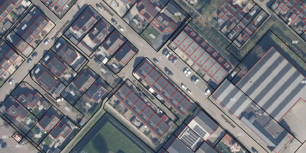 Het perceel waarop Hoogstraat 9 staat heeft een oppervlakte van 715 m². Dit is een groot perceel. De perceeloppervlakte wordt geregistreerd door het Kadaster. Gedetailleerde informatie over de maten van dit perceel kunt u vinden in het rapport Kadastrale kaart met maatvoering van Hoogstraat 9.