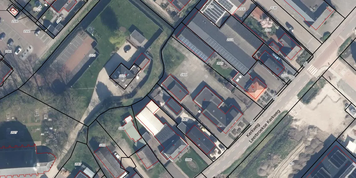 Kerkweg 6 is gelegen op kadastraal perceel LBK01B1501. Deze kadastrale aanduiding is uniek en wordt gebruikt door het Kadaster om eigendomsrechten en andere zakelijke rechten vast te leggen. Het perceel maakt onderdeel uit van de kadastrale gemeente Leerbroek.