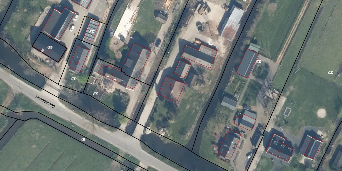 Het perceel waarop Middelkoop 66 staat heeft een oppervlakte van 2,8 ha. Dit is een zeer groot perceel. De perceeloppervlakte wordt geregistreerd door het Kadaster. Gedetailleerde informatie over de maten van dit perceel kunt u vinden in het rapport Kadastrale kaart met maatvoering van Middelkoop 66.