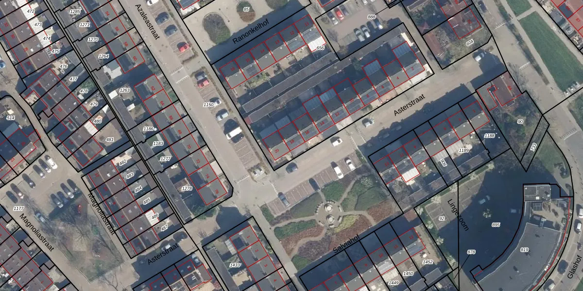 Het perceel waarop Asterstraat 18 staat heeft een oppervlakte van 5482 m². Dit is een zeer groot perceel. De perceeloppervlakte wordt geregistreerd door het Kadaster. Gedetailleerde informatie over de maten van dit perceel kunt u vinden in het rapport Kadastrale kaart met maatvoering van Asterstraat 18.