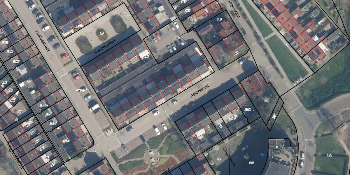 Het perceel waarop Asterstraat 8 staat heeft een oppervlakte van 5482 m². Dit is een zeer groot perceel. De perceeloppervlakte wordt geregistreerd door het Kadaster. Gedetailleerde informatie over de maten van dit perceel kunt u vinden in het rapport Kadastrale kaart met maatvoering van Asterstraat 8.