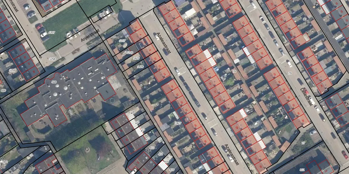 Het perceel waarop Azaleastraat 16 staat heeft een oppervlakte van 1682 m². Dit is een zeer groot perceel. De perceeloppervlakte wordt geregistreerd door het Kadaster. Gedetailleerde informatie over de maten van dit perceel kunt u vinden in het rapport Kadastrale kaart met maatvoering van Azaleastraat 16.