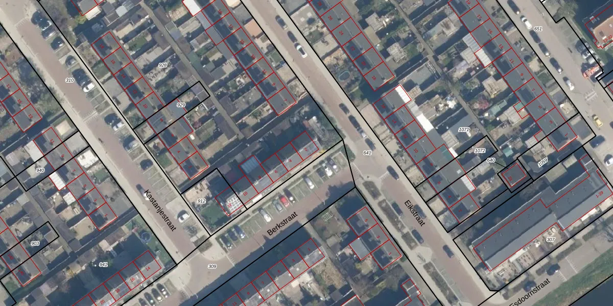 Het perceel waarop Berkstraat 2 staat heeft een oppervlakte van 4670 m². Dit is een zeer groot perceel. De perceeloppervlakte wordt geregistreerd door het Kadaster. Gedetailleerde informatie over de maten van dit perceel kunt u vinden in het rapport Kadastrale kaart met maatvoering van Berkstraat 2.