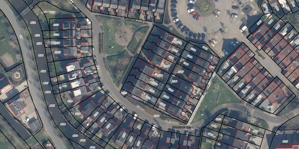 Het perceel waarop Bogerd 13 staat heeft een oppervlakte van 185 m². Dit is een middelgroot perceel. De perceeloppervlakte wordt geregistreerd door het Kadaster. Gedetailleerde informatie over de maten van dit perceel kunt u vinden in het rapport Kadastrale kaart met maatvoering van Bogerd 13.