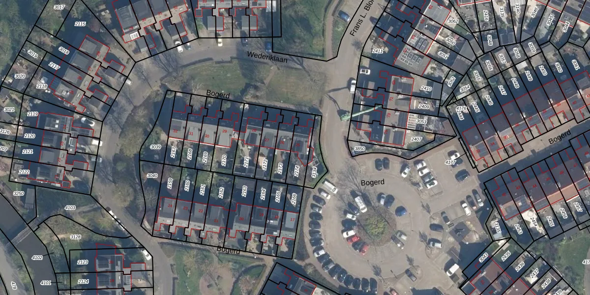 Het perceel waarop Bogerd 25 staat heeft een oppervlakte van 154 m². Dit is een middelgroot perceel. De perceeloppervlakte wordt geregistreerd door het Kadaster. Gedetailleerde informatie over de maten van dit perceel kunt u vinden in het rapport Kadastrale kaart met maatvoering van Bogerd 25.