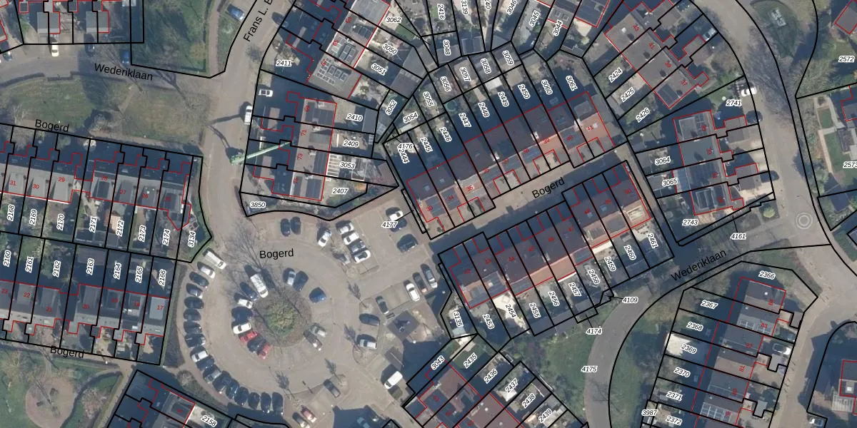 Het perceel waarop Bogerd 33 staat heeft een oppervlakte van 158 m². Dit is een middelgroot perceel. De perceeloppervlakte wordt geregistreerd door het Kadaster. Gedetailleerde informatie over de maten van dit perceel kunt u vinden in het rapport Kadastrale kaart met maatvoering van Bogerd 33.