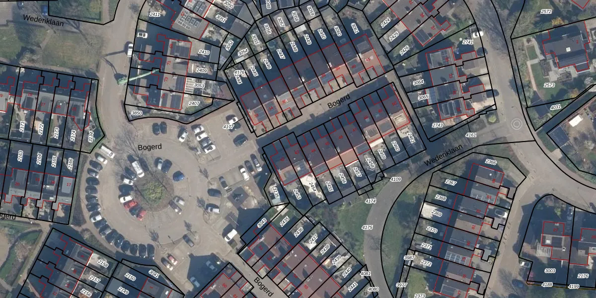 Het perceel waarop Bogerd 43 staat heeft een oppervlakte van 131 m². Dit is een middelgroot perceel. De perceeloppervlakte wordt geregistreerd door het Kadaster. Gedetailleerde informatie over de maten van dit perceel kunt u vinden in het rapport Kadastrale kaart met maatvoering van Bogerd 43.