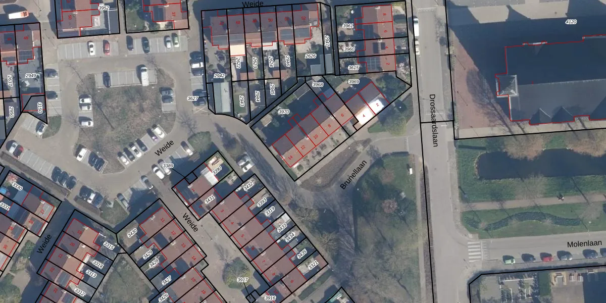 Het perceel waarop Brunellaan 12 staat heeft een oppervlakte van 545 m². Dit is een groot perceel. De perceeloppervlakte wordt geregistreerd door het Kadaster. Gedetailleerde informatie over de maten van dit perceel kunt u vinden in het rapport Kadastrale kaart met maatvoering van Brunellaan 12.