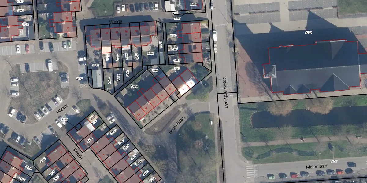 Brunellaan 4 is gelegen op kadastraal perceel LDM00C3969. Deze kadastrale aanduiding is uniek en wordt gebruikt door het Kadaster om eigendomsrechten en andere zakelijke rechten vast te leggen. Het perceel maakt onderdeel uit van de kadastrale gemeente Leerdam.