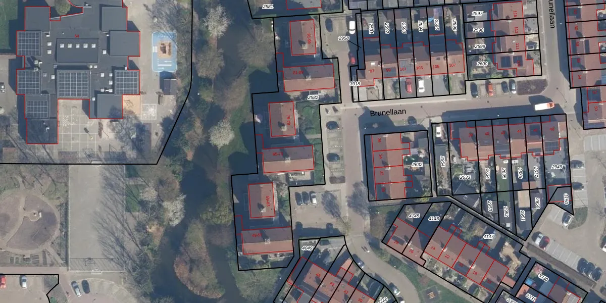 Het perceel waarop Brunellaan 67 staat heeft een oppervlakte van 1690 m². Dit is een zeer groot perceel. De perceeloppervlakte wordt geregistreerd door het Kadaster. Gedetailleerde informatie over de maten van dit perceel kunt u vinden in het rapport Kadastrale kaart met maatvoering van Brunellaan 67.
