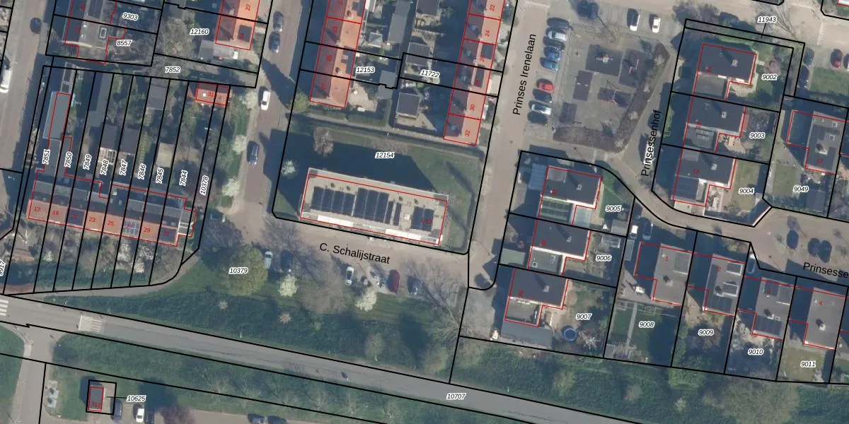 Het perceel waarop C. Schalijstraat 10 staat heeft een oppervlakte van 1730 m². Dit is een zeer groot perceel. De perceeloppervlakte wordt geregistreerd door het Kadaster. Gedetailleerde informatie over de maten van dit perceel kunt u vinden in het rapport Kadastrale kaart met maatvoering van C. Schalijstraat 10.