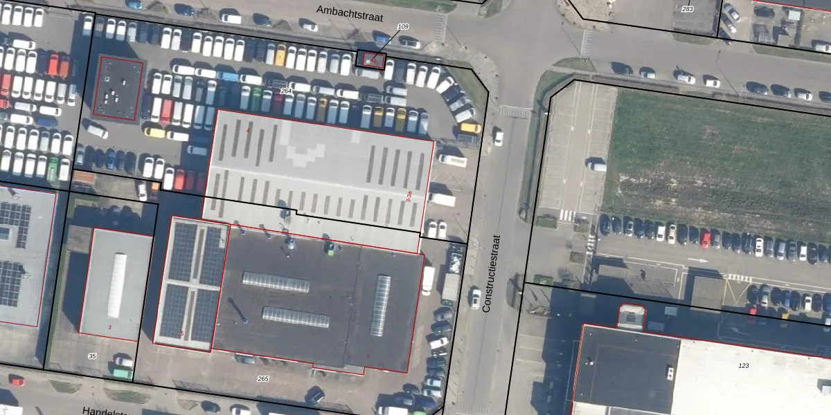 Het perceel waarop Constructiestraat 3-a staat heeft een oppervlakte van 3820 m². Dit is een zeer groot perceel. De perceeloppervlakte wordt geregistreerd door het Kadaster. Gedetailleerde informatie over de maten van dit perceel kunt u vinden in het rapport Kadastrale kaart met maatvoering van Constructiestraat 3-a.