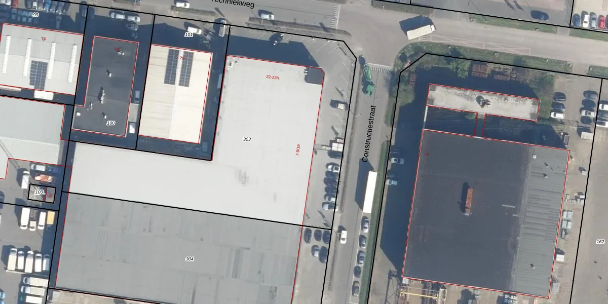 Het perceel waarop Constructiestraat 9-3 staat heeft een oppervlakte van 3431 m². Dit is een zeer groot perceel. De perceeloppervlakte wordt geregistreerd door het Kadaster. Gedetailleerde informatie over de maten van dit perceel kunt u vinden in het rapport Kadastrale kaart met maatvoering van Constructiestraat 9-3.