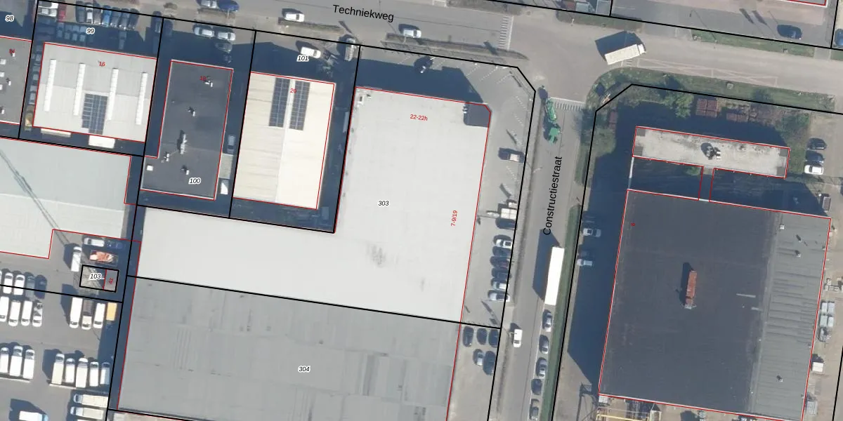 Het perceel waarop Constructiestraat 9-5 staat heeft een oppervlakte van 3431 m². Dit is een zeer groot perceel. De perceeloppervlakte wordt geregistreerd door het Kadaster. Gedetailleerde informatie over de maten van dit perceel kunt u vinden in het rapport Kadastrale kaart met maatvoering van Constructiestraat 9-5.