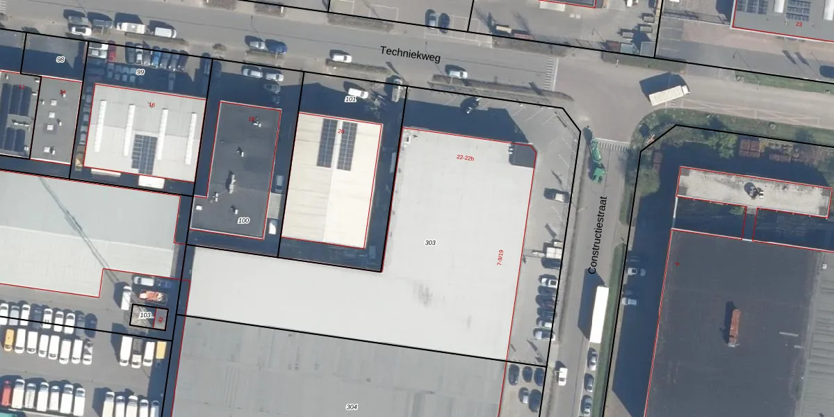 Het perceel waarop Constructiestraat 9-11 staat heeft een oppervlakte van 3431 m². Dit is een zeer groot perceel. De perceeloppervlakte wordt geregistreerd door het Kadaster. Gedetailleerde informatie over de maten van dit perceel kunt u vinden in het rapport Kadastrale kaart met maatvoering van Constructiestraat 9-11.