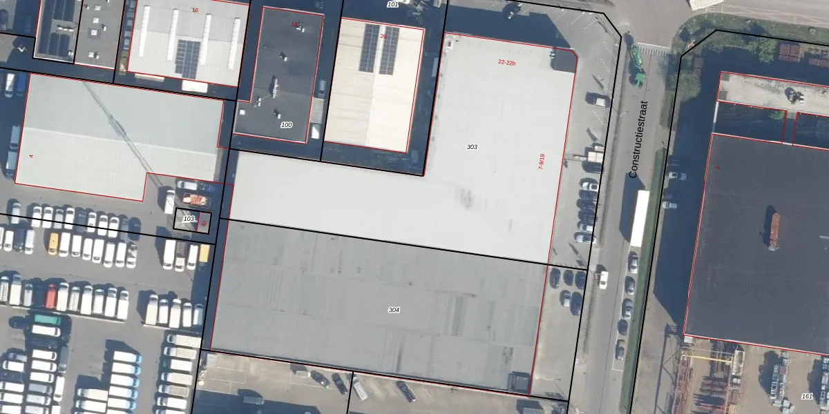 Het perceel waarop Constructiestraat 9-12 staat heeft een oppervlakte van 3431 m². Dit is een zeer groot perceel. De perceeloppervlakte wordt geregistreerd door het Kadaster. Gedetailleerde informatie over de maten van dit perceel kunt u vinden in het rapport Kadastrale kaart met maatvoering van Constructiestraat 9-12.