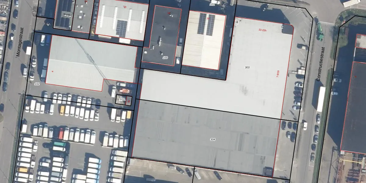 Het perceel waarop Constructiestraat 9-17 staat heeft een oppervlakte van 3431 m². Dit is een zeer groot perceel. De perceeloppervlakte wordt geregistreerd door het Kadaster. Gedetailleerde informatie over de maten van dit perceel kunt u vinden in het rapport Kadastrale kaart met maatvoering van Constructiestraat 9-17.