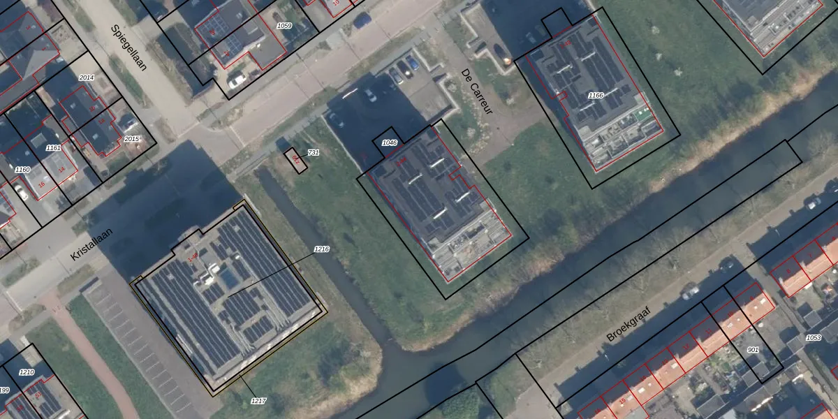 Het perceel waarop De Carreur 6 staat heeft een oppervlakte van 913 m². Dit is een groot perceel. De perceeloppervlakte wordt geregistreerd door het Kadaster. Gedetailleerde informatie over de maten van dit perceel kunt u vinden in het rapport Kadastrale kaart met maatvoering van De Carreur 6.