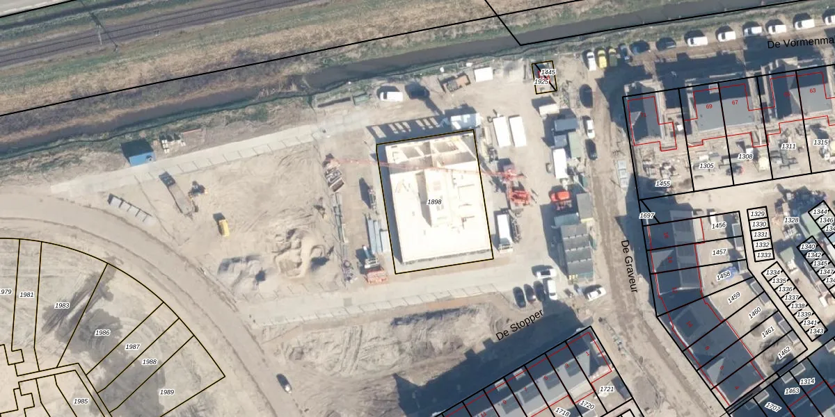 Het perceel waarop De Graveur 53 staat heeft een oppervlakte van 743 m². Dit is een groot perceel. De perceeloppervlakte wordt geregistreerd door het Kadaster. Gedetailleerde informatie over de maten van dit perceel kunt u vinden in het rapport Kadastrale kaart met maatvoering van De Graveur 53.