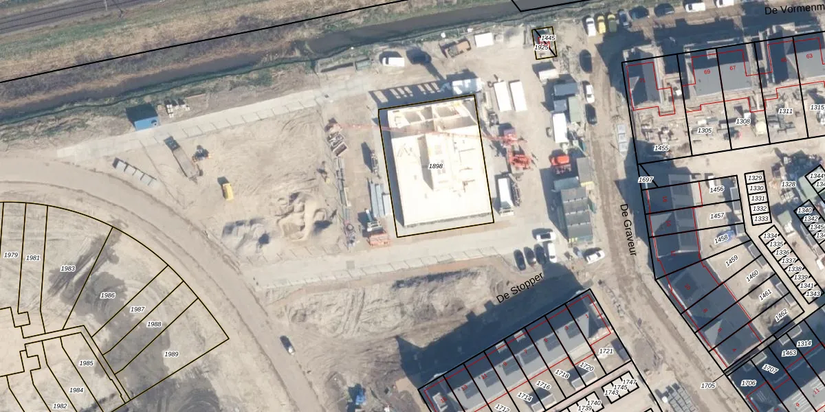 Het perceel waarop De Graveur 59 staat heeft een oppervlakte van 743 m². Dit is een groot perceel. De perceeloppervlakte wordt geregistreerd door het Kadaster. Gedetailleerde informatie over de maten van dit perceel kunt u vinden in het rapport Kadastrale kaart met maatvoering van De Graveur 59.