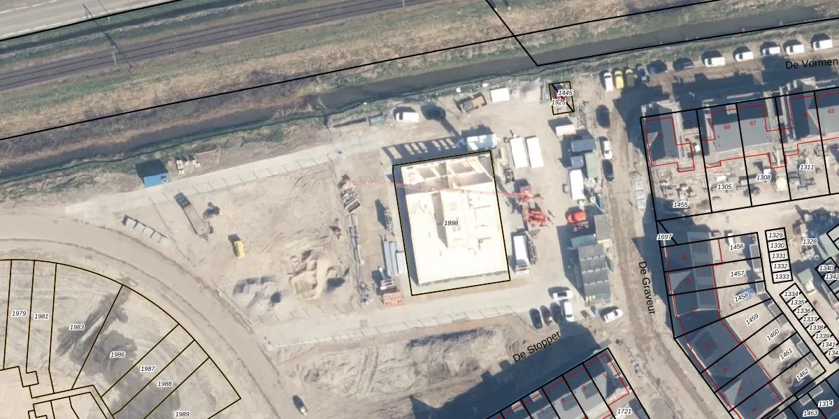 Het perceel waarop De Graveur 63 staat heeft een oppervlakte van 743 m². Dit is een groot perceel. De perceeloppervlakte wordt geregistreerd door het Kadaster. Gedetailleerde informatie over de maten van dit perceel kunt u vinden in het rapport Kadastrale kaart met maatvoering van De Graveur 63.
