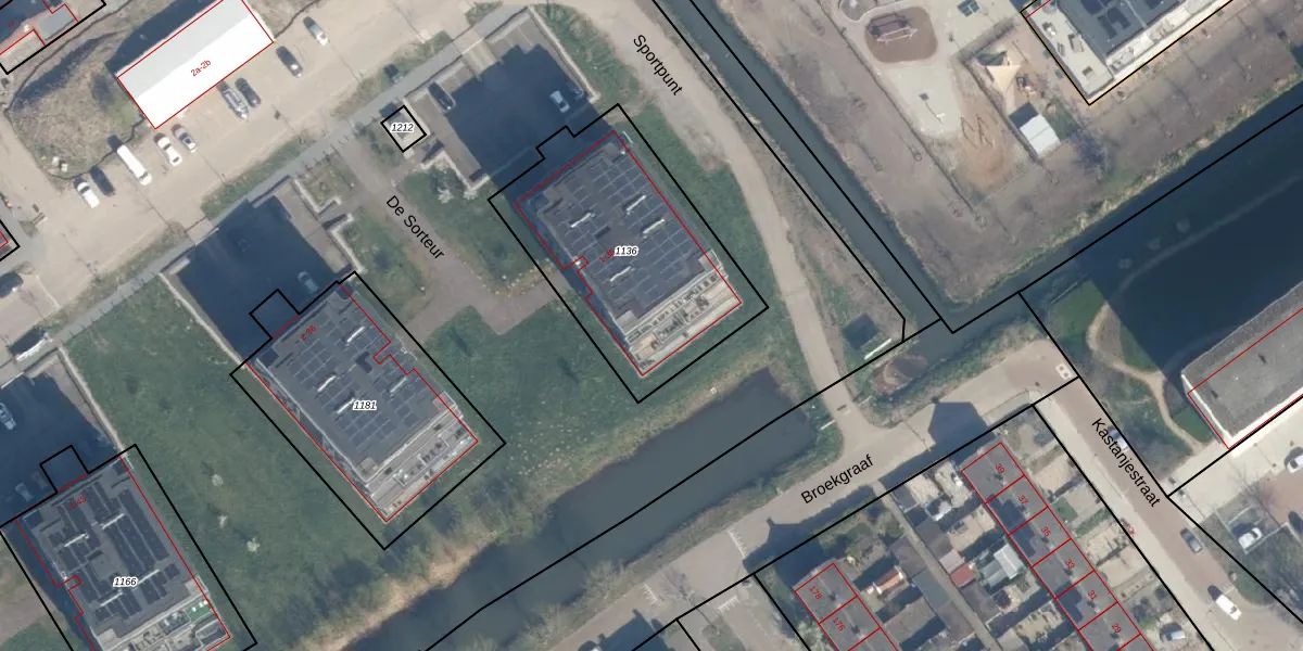 Het perceel waarop De Sorteur 1 staat heeft een oppervlakte van 970 m². Dit is een groot perceel. De perceeloppervlakte wordt geregistreerd door het Kadaster. Gedetailleerde informatie over de maten van dit perceel kunt u vinden in het rapport Kadastrale kaart met maatvoering van De Sorteur 1.