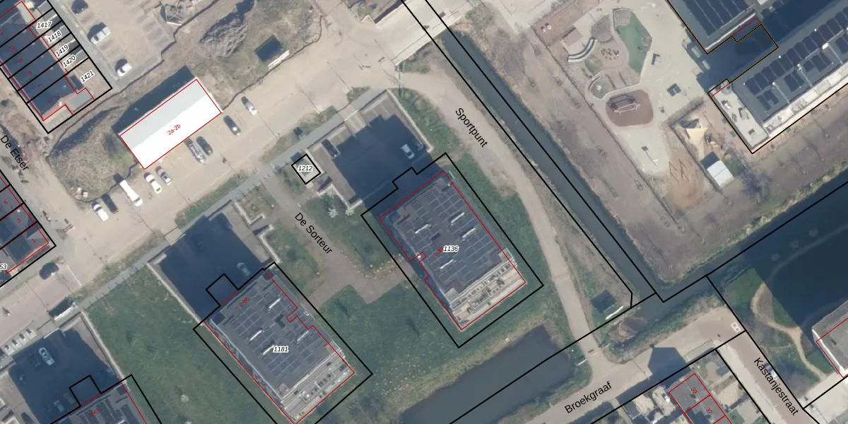 Het perceel waarop De Sorteur 23 staat heeft een oppervlakte van 970 m². Dit is een groot perceel. De perceeloppervlakte wordt geregistreerd door het Kadaster. Gedetailleerde informatie over de maten van dit perceel kunt u vinden in het rapport Kadastrale kaart met maatvoering van De Sorteur 23.